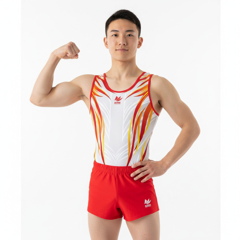 斬新でスタイリッシュなファイアーモチーフにより、心の奥底の『闘志』をイメージした男子体操ユニフォームです。 色の濃淡を巧みに使い分けることで、立体感のあるデザインに仕上げました。 色変えと、チーム名加工(別途お見積り)が可能です。 ーーーーーーーーーーーーーーーーーーーーーーーーーー ボディ生地:トリコット生地 トリコット生地は伸びがよく、肌触りの良い柔らかい生地です。 ※短パン長パンは別売りとなります。 ※受注生産品のためご注文より、お届けに約6週間ほどお時間をいただいております。  ご注文後の返品交換ご対応が難しいため、注文時のサイズなどにご注意ください。 ※トランポリン競技にもお使いいただけます