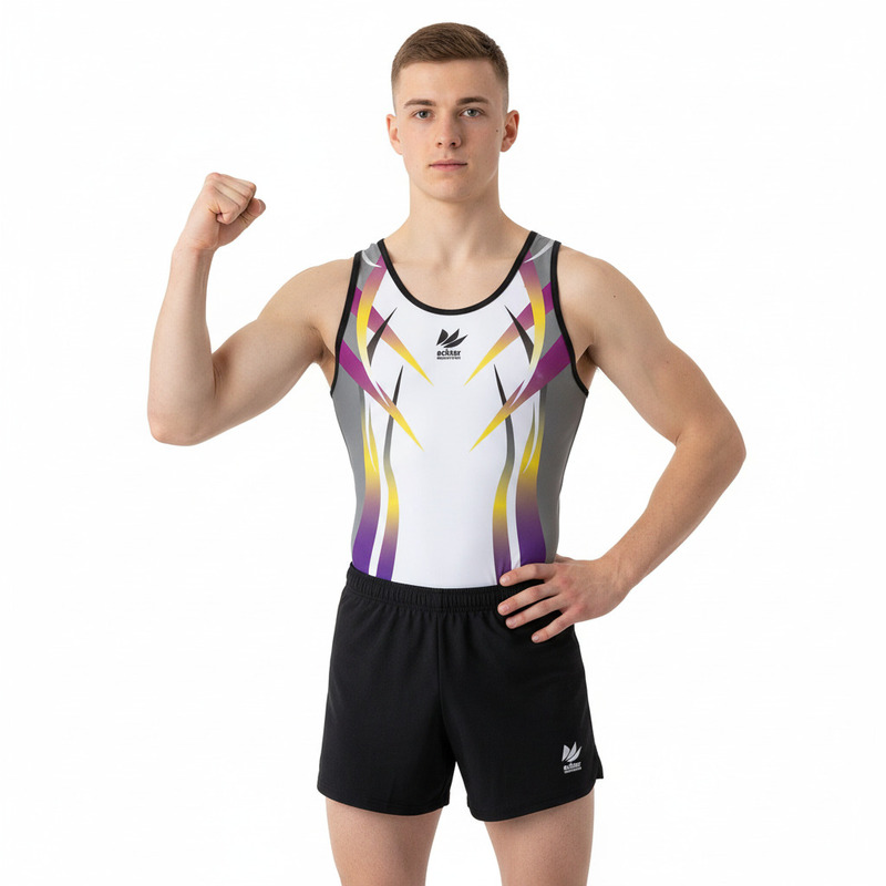 選手の闘志をグラデーションで、また練習により磨かれた技術を鋭いオブジェクトで表現した男子体操ユニフォームです。 サイドのカラーをグレーにして印象を抑えることで遠目から見たときに体型にメリハリの出るデザインとなります。 色変えと、チーム名加工(別途お見積り)が可能です。 ーーーーーーーーーーーーーーーーーーーーーーーーーー ボディ生地:トリコット生地 トリコット生地は伸びがよく、肌触りの良い柔らかい生地です。 ※短パン長パンは別売りとなります。 ※受注生産品のためご注文より、お届けに約6週間ほどお時間をいただいております。  ご注文後の返品交換ご対応が難しいため、注文時のサイズなどにご注意ください。 ※トランポリン競技にもお使いいただけます