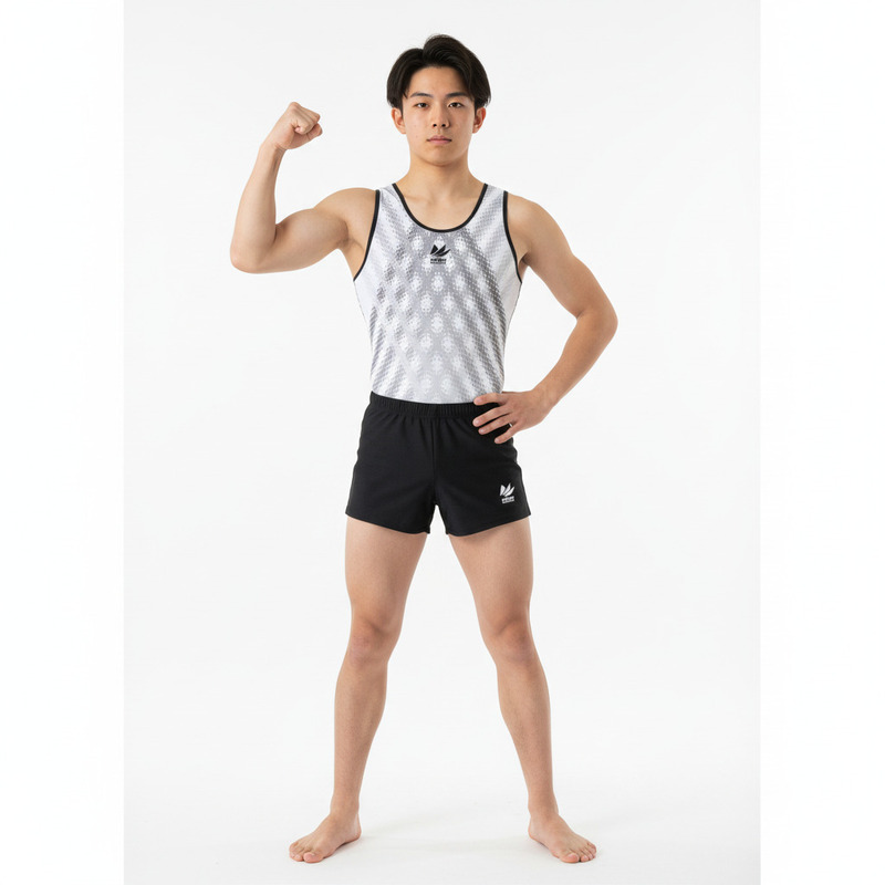 シンプルながら独特のタッチの柄で構成されているため会場でオリジナリティを感じさせることができるデザインとなります。 ボディカラーをモノクロに抑えることで大人っぽいモダンな印象となる男子体操ユニフォームです。 色変えと、チーム名加工(別途お見積り)が可能です。 ーーーーーーーーーーーーーーーーーーーーーーーーーー ボディ生地:トリコット生地 トリコット生地は伸びがよく、肌触りの良い柔らかい生地です。 ※短パン長パンは別売りとなります。 ※受注生産品のためご注文より、お届けに約6週間ほどお時間をいただいております。  ご注文後の返品交換ご対応が難しいため、注文時のサイズなどにご注意ください。 ※トランポリン競技にもお使いいただけます