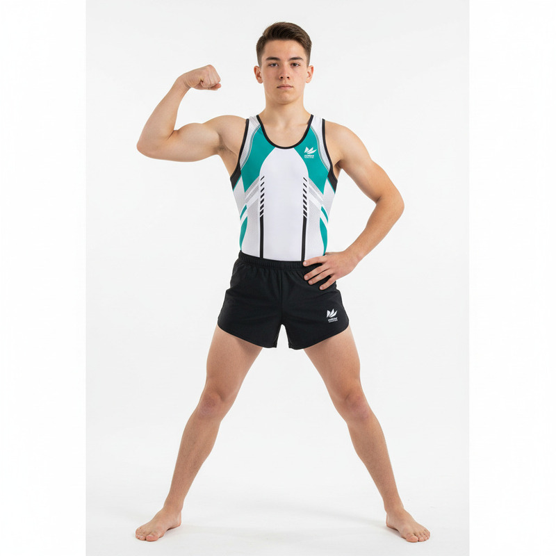 幾何学なラインでボディラインが男性らしい力強さを演出する男子体操ユニフォームです。 黒でサイドと肩周りを引き締めることで、周囲には繊細なイメージを与えることができます。 色変えと、チーム名加工(別途お見積り)が可能です。 ーーーーーーーーーーーーーーーーーーーーーーーーーー ボディ生地:トリコット生地 トリコット生地は伸びがよく、肌触りの良い柔らかい生地です。 ※短パン長パンは別売りとなります。 ※受注生産品のためご注文より、お届けに約6週間ほどお時間をいただいております。  ご注文後の返品交換ご対応が難しいため、注文時のサイズなどにご注意ください。 ※トランポリン競技にもお使いいただけます