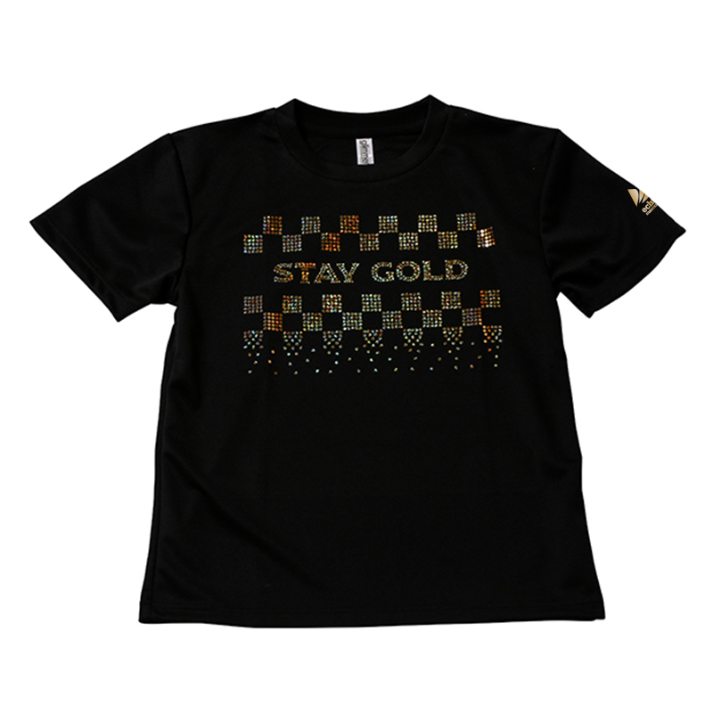 凹凸のないスパンコールでデザインされたキラキラTシャツ。 ドライ生地でサイズは男女兼用規格です。