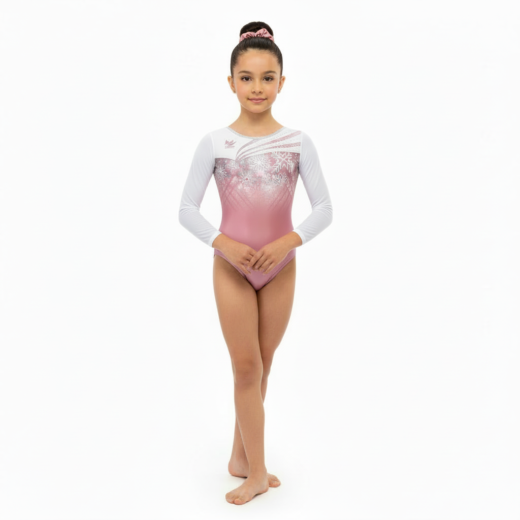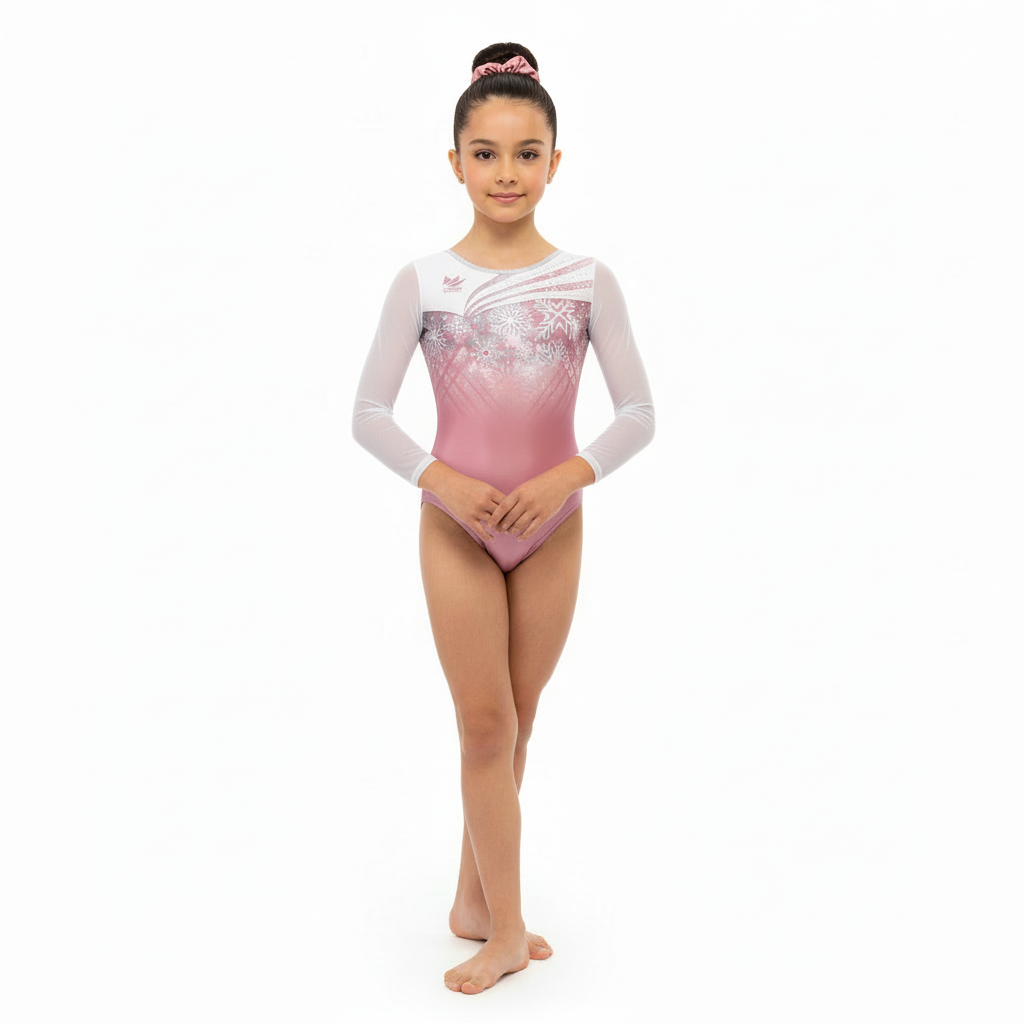 【袖付けカスタム】女子体操レオタード / Snow crystal(ピンク)
