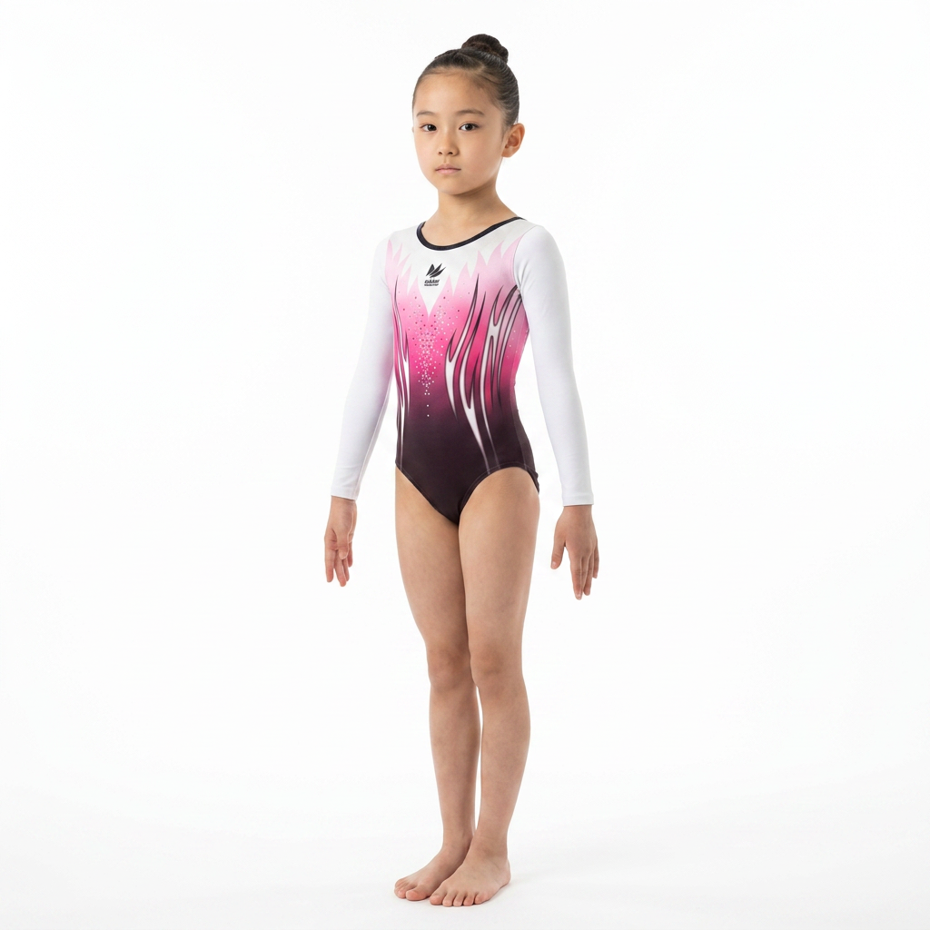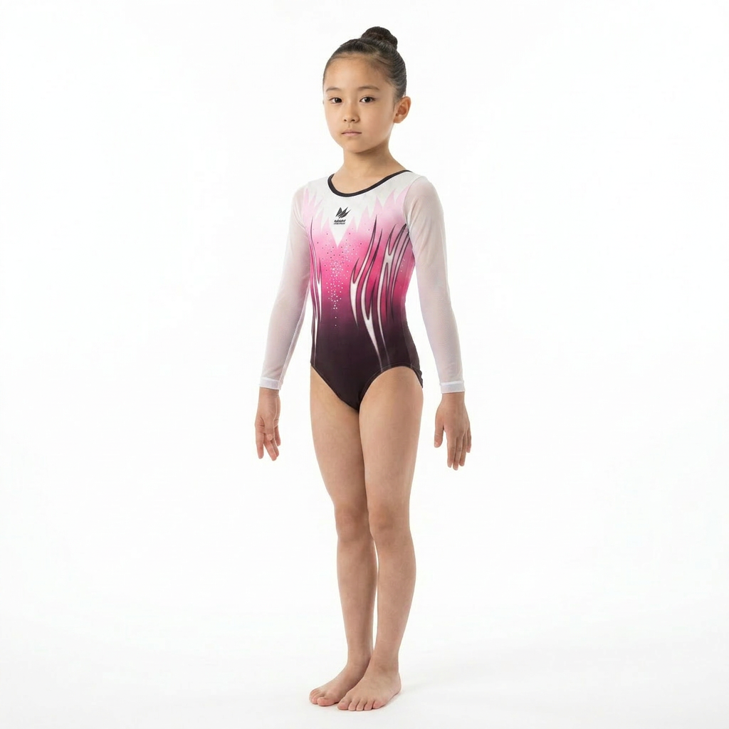 自信を持って演技ができるようにと願いが込められたデザイン。 スタイルアップ効果の模様とグラデーションで、 下半身がすっきり見える体操レオタードです♪ ----------------------------------------- *袖付けカスタマイズ* こちらの商品は袖付け加工注文が可能です。 袖丈は、7分丈と9分丈をお選び頂けます。 袖の生地は、2種類からお選び頂けます。 (トリコット・メッシュ_袖カラー:ホワイト) ※本商品は受注生産となりますので、 ご注文からお届けまで5~6週間程度、お時間を頂きます。